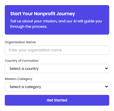 Our AI-powered platform supports nonprofit formation across multiple countries and jurisdictions.